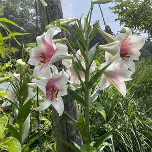 豪雨の後… テッポウユリの花が咲きました…🤍 パイナップル🍍リリーは 今年も咲きそうにないですが 代わりにテッポウユリの花が 見事にパイナップル🍍リリーの花のよう… 🤣