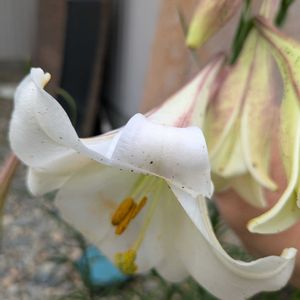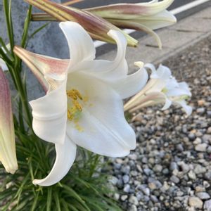 ෆ ෆ ෆ⸒⸒⸜( ˶'ᵕ'˶)⸝ おはようございます テッポウユリが咲き出しました😊 球根秋に植えて ꕀꕤ*。゚•*¨*•.¸¸♬︎