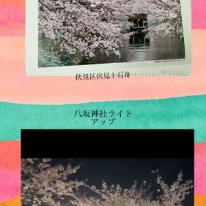 京都伏見区伏見石舟カレンダーの撮影場所 🌸🍃 八坂神社ライトアップ…夜桜𓂃🌸𓈒𓏸孫娘のLINE便 🏷カレンダーの日に参加させて頂きます𖤣𖥧𖥣。𖥧𖧧