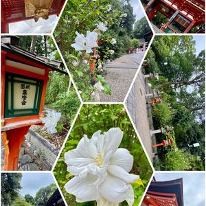 💙○︎o。空と植物。o○︎🤍 |ョ'ω'〃)おはようございます♪︎ 🍀GS『今日のお花』ムクゲ♡ ⛩️京都ෆ̈八坂神社さんの白い半八重咲きのムクゲ〜🏷️祇園守(ぎおんまもり) ⛩️八坂神社で授与される護符のぎおん守りのかたに似ていることや神紋と似ていることから名付けられたとか🤔 🤍本殿裏側にまだ咲いていますよ〜♪