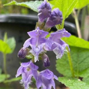 ラショウモンカズラ(羅生門葛) シソ科 ラショウモンカズラは紫色の大きなお花を横向きに咲かせます💜 このお花の形や向きそして大きさ等は💛花粉の運び手であるマルハナバチに向けて進化したと言われています🐝お花の上部に雌しべが見えますね👀 芥川龍之介を彷彿とさせる📖名前の由良は💜 渡辺綱が羅生門で切り落としたとされる鬼女の腕に💪お花の姿が似ているとされていますが❓❓ 私にはツボミはクシャおじさん‼️ 開花時は髭の水兵さん⁉️の様に見えますが❓❓