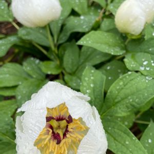 ヤマシャクヤク(山芍薬) ボタン科 ヤマシャクヤクは山地や深山の林床に生える野生のシャクヤクです⚪️ 茎の先に白い美しい花を上向きに1個つけます⚪️ 花びらは5~7枚で、中心にたくさんの雄しべと🟡2~4本の雌しべがあり🔴 バナナ🍌の様にやや曲がった雌しべの柱頭は赤く🔴 花びらは雄しべや雌しべを抱えるように咲く上品なお花です❣️ 名前由来は 山に自生し中国から渡来した芍薬(シャクヤク)に葉の形や蕾が似ているところからきているとか⁉️