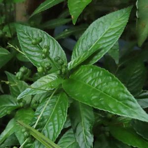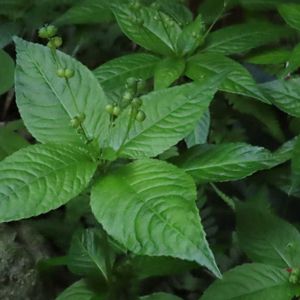 ①ヤマジオウの花後 ↙7月のツボミ 開花に間に合いませんでしたがツボミの形から想像してヒメオドリコソウに似た花? ②トチバニンジンの花後 ツヤツヤのヤマアイの葉っぱから❓🤔 ↙と根元を見たらトチバニンジンの花後かな? ➂ムカゴイラクサと教えていただきました。 ありがとうございます。 群生せず、1株だけ。輪生した葉の中心から伸びている。 植林内の谷川のそば。 アケボノソウを見に行ったら、昨年迄群生していた場所には見当たらず。 🦌の食害かな?