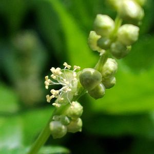 ヤマアイ トウダイグサ科ヤマアイ属 多年草 本州日本海側と静岡県以西の太平洋側、四国、九州に分布 林内や林縁に見られる。 花は緑色の小さな花で花弁はない。 茎葉を染料とし、日本最古の染料とも言われる。 アイと似ているが、藍色ではなく緑色である。 花期1〜7月