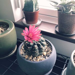 ダイソーサボテン緋花玉が今年も咲いてくれました。とても綺麗。 鸞鳳玉もダイソー産。隣のアロエブリザードは次々に子株が出てきて鉢が狭そう…