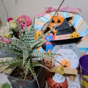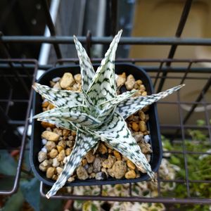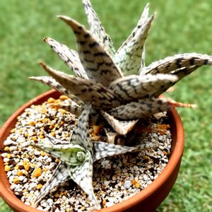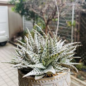 ゼブラ柄が美しいアロエ ブリザード よっく見たら子株が出てました 明日から外に出してみます🌞
