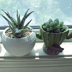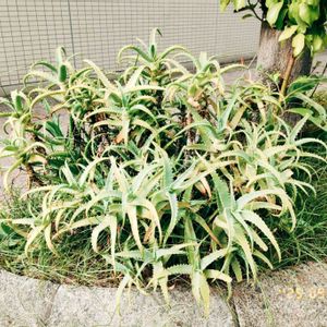 🟨アロエ ドニー&ブリザード🟩 赤い方がドニー、白い方がブリザードです。 我が家の多肉寄せ植えの一つです。寄せ植えと言えるか微妙ですが……