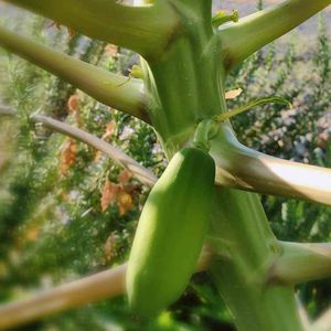 9月の終わりに花を咲かせていた青パパイヤ。実がなっています。