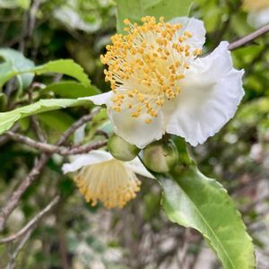 お茶のお花🌸 今頃咲くのですねー^_^ シベが王冠のようです👑 朝顔🌸 星✨みたい🩵
