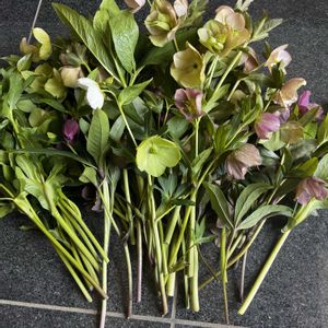 クリスマスローズ🥀のお花を切りました スワッグにし 廊下に飾りました 生のままなので輪ゴムでしっかり締めました