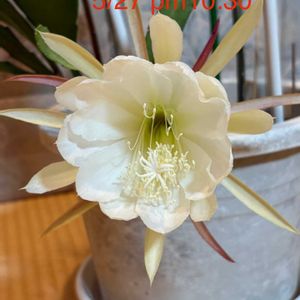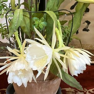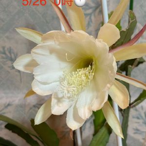 昨日の朝開花始めた月下美人さん 夜中に全開に🤍 今朝5:30 しぼんでない‼️ もう一個ある蕾 今日咲きそう🎶