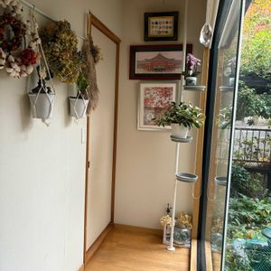 明日から冷えそうなのでリッチェルの支柱ポールを立ててホヤと、マイクロ胡蝶蘭を置きました ホヤはツルが1メートルどころじゃないけど花が咲きません でも葉っぱだけでも綺麗なピンクやクリーム色、斑入りで楽しませてくれます 早く咲いてほしいな〜🌸 ドライフラワーの間にマハラジャを下げました ハイビスカスも小さく切り戻して軒下からリビングに入れました