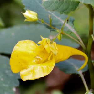 キツリフネ (ツリフネソウ科) ユーラシア大陸・北米大陸に広く分布。 花の色が黄色で、ツリフネソウと違って 距(花の後ろの突き出た部分)は、巻いていません🌀また、ツリフネソウは葉っぱの上に咲きますが、こちらのキツリフネは葉っぱの下に咲く様です。 微妙な違い…ど素人の私には調べて初めてわかります😅 四季の森公園にて撮影📷