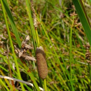 ヒメガマ コガマ ヒメガマは水深の深い所 コガマは浅い所で群落を作るそうです いつの間にかヨシが混じって 足元にヤマイが繁り ツルマメが絡み セイタカアワダチソウが蕾を付け メリケンカルカヤは乾いた所で繁茂 外来種も在来種も育ち 思ったより早く、緑の多い河原になって来ました