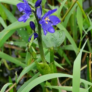 イボクサ(疣草) ツユクサ科 分布…本州.四国.九州 草丈…30~40㌢ 花径…1.3㌢程 花期…8~10月 和名の由来は 葉の汁をつけるとイボがとれることから…だそうです…が 可愛いお花なのに 何だか可哀想な お名前です😢 水田の厄介者らしいですが 此方では緑地の湿地に オギノツメと 一緒に咲いていました🌿 咲いてから数時間で 萎んでしまうそうです💧