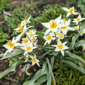 💞❤️🩵 庭の花 1️⃣原種系チューリップトルケスタニカ 2️⃣原種系チューリップヘレナ 3️⃣キバナノアマナ 4️⃣ヒヤシンス 5️⃣フロックスムーディーブルー 📸2025.04.22