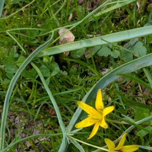 外出先で見つけたキバナノアマナです。