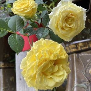 ①今日のお花 バラ(黄色) ②キバナノアマナ? ③ミツバシモツケ ④ハコネウツギ 白〜濃いピンクに 変わっていきます。