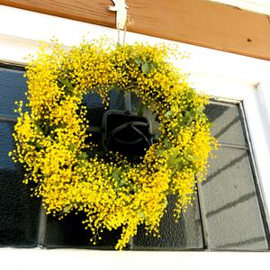ミモザリース作りました🌼 リース台は藤蔓くるくる丸めて、アイビー蔓をまきつけたもの。 リース台にぐるりつけたので、フライングリースになれます♪ お花をドライにしようと吊るしていき、あとは籠にある葉っぱを全て取ったものだけど…になったところで、ガーランドの先っぽに括れば?!と思い立ち、久々に天井がお花のシャワー状態になりました|∧∧ |・Ο・ ) ♡ |⊂ノ | |๑ˊ͈ ꇴ ˋ͈)ꕤ