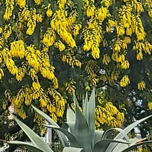 今日のお花 🌱 アガベ🌱 素敵なCafeにて 大きなミモザの側にアガベ 2025年3 月17日撮影
