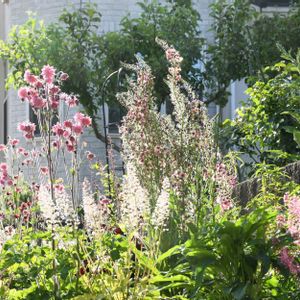 夕暮れ時に低いアングルから花壇の花を撮ってみました😀 オダマキ・ローズバロー、バーバスカム・サザンチャーム、シレネなどが咲いています😊 今日は京都から大学生が15人ほど田植え体験にやって来て、私の住む地区の役員が迎えました😃 結局、仕事が終わって庭に出たのが午後4時過ぎで、この写真を撮った次第です😅 今年はバラの開花が遅れており、オープンガーデンも例年よりも一週間遅らせることにしました。手入れの期間が延びるので残念ではありますが、仕方ないです🥺 明日こそは午前中は雨が降らないようですから、庭仕事をしようと思います😄