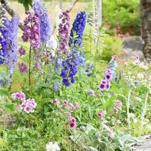 ①ブルーの花壇に咲くデルフィニウムとフロックス・シュガースターです💙 ②ゲラニウム・ロザンネ 今年も夏を越してくれるといいのですが🤔 ③ベロニカ・ロイヤルキャンドル 今年、苗でお迎えしました😊 ④ペンステモン・エレクトリックブルー 種を蒔いて2年目にようやく開花です😃