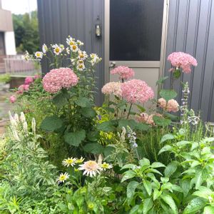 ご無沙汰してます🙇♀️ 久しぶりに平日に年休を頂いたので、投稿しました📸 ①⑤梅雨らしい天気で、雫を纏った宿根草達 この時期は、アナベルとエキナセアがナチュラルな雰囲気を醸し出してくれます。 ②1番好きなエキナセア チェリーフラフ ③エキナセア ラズベリートラッフル 咲き始めより、色がくすむ咲き終わりの頃が好き ④エキナセア デリシャスヌガー ホワイト✖️グリーンの清楚な花
