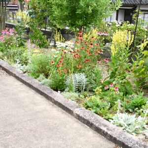 久しぶりの投稿になります😅 7月に入って、暑すぎて雨も降らず、毎日水やりにいそしんでおりました☺️ これらの写真は10日ほど前の花壇の様子です。まだ春の雰囲気が残っていますが、今は夏の花壇に変貌しています😂