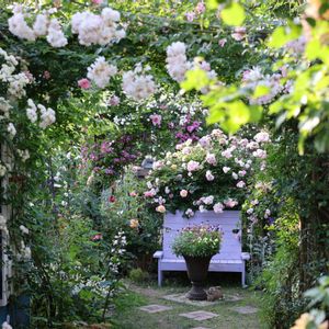 DIY ミニ小屋に誘引したつるバラ🥀 名前はド忘れしました😅