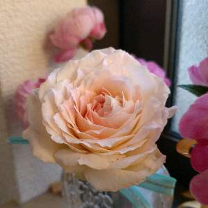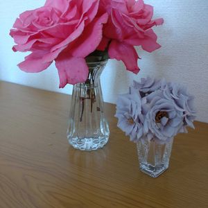 庭で咲いていたバラ。気温が下がり花が開きづらくなってきましたが、切花にするとちゃんとひらきました。