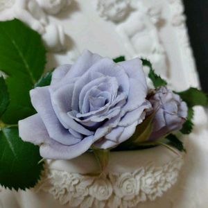 天使ちゃんに見守られて…(•ө•)♡ ブルードレスさんの2番花🌹 結構青く見えるのではないだろうか🧐 雨の日が続いたからか、1番花に比べてかなり青く咲いてくれました! ここまで青くなるのは秋以降しかないだろうと思っていたのでこれはかなり嬉しいです🥰