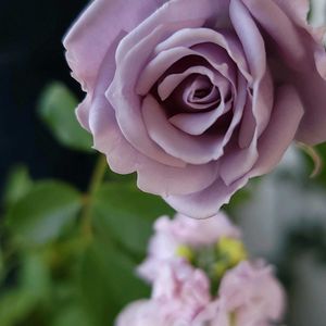 うちで育てている8種類の薔薇のうち、一番最初に咲いたのは青薔薇のブルードレスさんでした☺️💙 屋外や、明るい室内で見ると薄紫色ですが、少し暗い玄関等で見ると青みが増してびっくり😳 ブルードレスさん、綺麗なお花を見せてくれてありがとう💙 お迎えして本当に良かった🥰