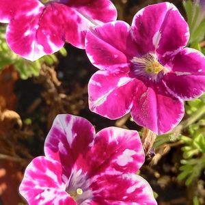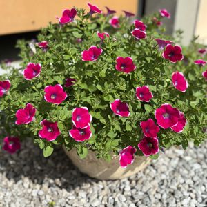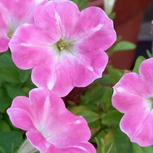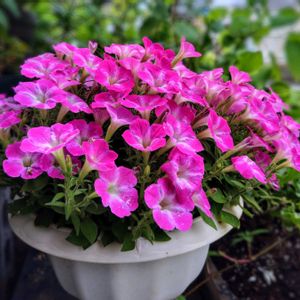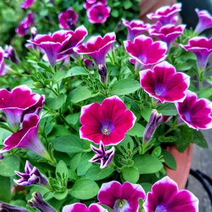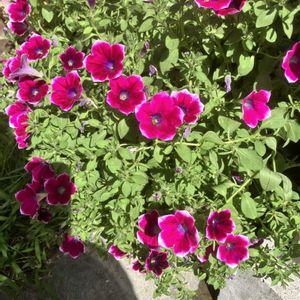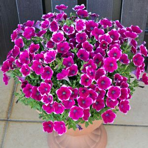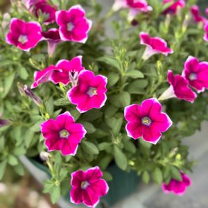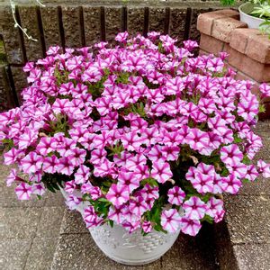 ペチュニア ①②2回目の満開この後切り戻し ①ビスタミニ 8号鉢 春は色が濃かったが白が多くなって可愛くなった🥰 ②小梅ちゃん 8号鉢 途中雨で満開前に切り戻したけど回復が早い ③あずきフラッペ 6号鉢 5月に購入した苗、花が咲きだした🌸 横に広がり易いようで鉢から枝垂れそう