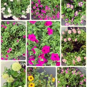 ペチュニアの切り戻し前のpic これから日当たりが悪くなるので最後の切り戻しになります ①②あずきフラッペ 初めての満開、暑くても発色良く可愛い😍 ③スーパーチュニア、小梅ちゃん 3、4回目の満開、切り戻しからの回復が早い