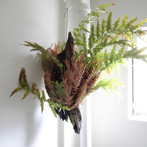 飛竜羊歯🐲 切り花のお花屋さんで売られていたのが素敵だったので1本だけ求めて飾っていたのだけど(¥198) 切り取られる前の株ごと見てみたい。この葉っぱ1本だけでも60cmくらいはあったから、想像するにそれはそれは見事でしょうね。 GS見てると、ドリナリアの板付けなんかを楽しんでる方がいてこれまた憧れる。雪国ではやれんけど。 枯れた外套葉と新葉…あ~いいなぁ~😂 🏷️毎月4日はシダの日