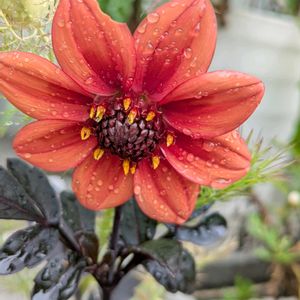 庭に出てみたら…長雨で水たまりが出来ていました🙄💧梅雨よりしっかり降っているのでは⁉️お休みしていた銅葉のプチダリアが咲いて…庭にお花が少ないからうれしいな〜😂💗
