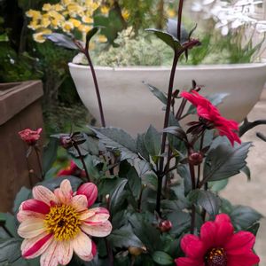 ❶❷ハイビスカス ケイト✨秋になり少し深い色合いになりました🥳❸先日園芸店でゲットした銅葉ダリア✨✨💘❹同じく園芸店でゲットストック✨✨オシャレな色でお気に入り💓💓