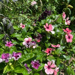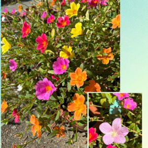 ウチ🏠の小さな庭から こちら日中はまだまだ暑くて💦、夏のお花がまだ元気に咲いています❣️ ①今日は昼までの勤務で、ホムセンパトロールして帰宅したら、昼間にしか見る事が出来ない『虹色ポーチュラカ』が玄関前でモリモリ咲いていました🩷💛🤍🧡💚 その中で私の好きな原種ハイビスカス『ロバツス』🩷が枝を伸ばして私も写して‼︎と言わんばかりに主張してました🫶💕 ②コリウス💚🤎❤️と夏のお花達がお互いに引き立て合っています。 イソトマ🤍は真夏には枯れたかな?と思える程グッタリしてましたが、ココへ来て元気を取り戻し、まるで白い蝶🤍が沢山舞ってるよう💓 ③お花達🩷🤍❤️だいぶ花付きは悪くなってはきましたが、頑張って咲いてくれています。 ④西側の道路側に置いている寄せ植え。黄色いマリーゴールド💛は最後の一輪かなぁ🤔? 銅葉のダリアは最近になって生き返ったような?…でも花が咲いた事が無い…💦ホントは深い赤の大人っぽいダリアが❤️🖤が咲くはずなんだけどなぁ🤔💕 向こう側の赤い千日紅❤️はまるでイチゴ🍓のような可愛さ😋💕で、いい感じにコラボしていました👍✨ ⑤東側の寄せ植えには八重咲きニチニチソウの『サニープリンセス』🩷が咲いています。やはり真夏のキツい暑さは苦手だったようで、今頃になってよく咲いてくれるようになりました😊💕 ホームセンターに寄ってみましたが、パンビオ達が少しずつ入荷していました。季節は春に向けてのお花達が徐々に増えていくのでしょうが、こちら昼間はまだまだ暑くて、植え替えもなかなかやる気になれません😓⤵️ しかも日暮れが早くなり、ヒンヤリしてきた頃には真っ暗⤵️💦 …まぁ無理せず、体調と相談しながらマイペースにボチボチやっていきます😊✨