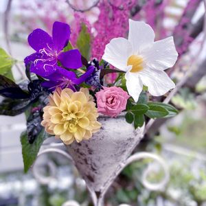 🌹今日の日の為に🌹✨…友達が雨の中このアンティークなハンギング的鉢❓をプレゼント- ̗̀🎁 ̖́-しに来てくれました(♡∀♡〃)‼ 😊早速庭に咲いてるお花を生けて🌸自己満の世界に…ꉂꉂ(ˊᗜˋ*) シンプルis Best😉 素敵な思い出(୨୧ ❛ᴗ❛)✧となり 花友さん達にも感謝致します𝑻𝒉𝒂𝒏𝒌𝒔(*ˊᵕˋ*)੭ ੈ❤︎(⸝⸝>ᴗ(>ᴗ<⸝⸝)ぎゅ~❤