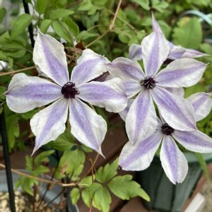 クレマチス ソワレが次々と咲いています💜 咲き進むと少し青みがかってくるような気がします。 花持ちが良く金曜に咲いた一番花が6日目でもまだ綺麗な状態です♪ 白いシベも好みです🥰