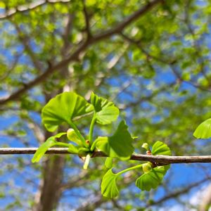4/14 おさんぽ 早朝16℃ 日中21℃予報 🍃イチョウの🌱新芽 ドウダンツツジ 🌸八重桜 🌸しだれ桜 ヤブツバキ 🌷チューリップ 🍃花芽(名前不明)…