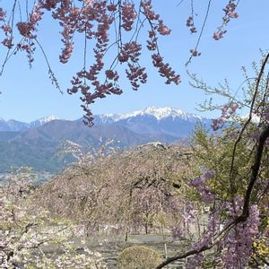 🌸4月21日(月)福島県喜多方市の枝垂れ桜並木へ🚗。。。🌸🌸🌸 1 画角に収まりませーん! 2ふわっふわ 3青空と雪山をバックに