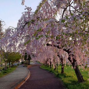 喜多方しだれ桜並木情報 7 今朝の状況です そろそろ終わりですね~ この春も楽しませて頂きました😊 静かなウォーキングコースに戻ります😁