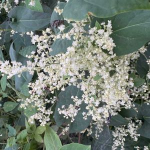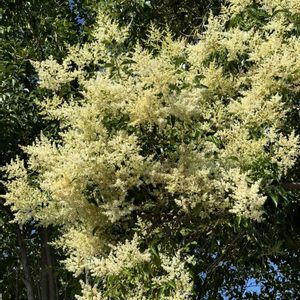 我が家のベランダから白い花を咲かせた木々が何本も見えます❗️ トウネズミモチです。 まだ満開ではありませんが、白い小さい花を沢山つけていました❣️