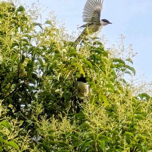 花散歩で✨ 🌿🪽🪽🟢💚💜🤍🤍🩷♪ 1️⃣トウネズミモチと オナガが飛びます 2️⃣紫陽花 素敵に色変のお花 みつけました 3️⃣桔梗とコキア 4️⃣八重のムクゲ🤍 5️⃣八重のムクゲ🩷 今日も 笑顔😄で 過ごせますように💐 そうだ今日は選挙に行かねば🗳️