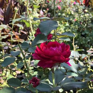 「小田原フラワーガーデン」 秋のバラ🌹その2 (2025/11/3撮影) ①「ジュビレデュプリンスドゥモナコ」🇫🇷 ②「チャイコフスキー」🇫🇷 ③「プリンセスアイコ」🇯🇵 ④「フリージア」🇩🇪 ⑤千日紅にシジミ蝶 まだこれから綺麗に咲きそうでした🌹☺️💕