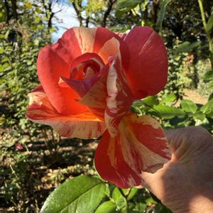 「小田原フラワーガーデン」 秋のバラ🌹その1 (2025/11/3撮影) 良い香りに包まれて楽しくお散歩できました🚶♀️ ①「ラブ」🇺🇸 表弁と裏弁の赤白のコントラストが魅力🥰 ②「デスティニィ」🇫🇷 ③「ニューアベマリア」🇩🇪 花持ちが良いサーモン朱が美しい🤩 ④「ブルーリバー」🇩🇪 赤紫の外弁と濃厚な香り😌 ⑤「ダイアナプリンセスオブウェールズ」🇺🇸