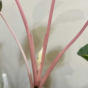 濃いグリーン色の葉っぱにピンク色の覆輪とステムの組み合わせが美しいアグラオネマ•モンコンファイ🩷😍 新芽が出てきましたが少し徒長気味です😆