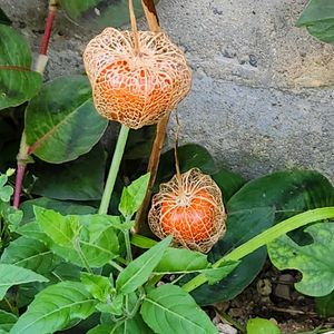 こんにちは⛅️ 庭パトで見つけました 透かしホオズキになっています😱 こぼれ種であちこちにオレンジ色があります