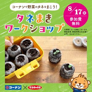 \コーナン×サカタのタネ/ 大好評のタネまきワークショップを、今年も開催いたします🙌✨ 夏休みの自由研究にもピッタリです♪ ぜひお近くのコーナン店舗へお越しください🏃💨 【開催情報】・・・・・・・・・・・・・・❦ 🌱イベント内容 タネまきワークショップ 🌱開催日時 8月17日(日) 🌱開催場所 コーナン各店舗 ※開催しない店舗もございます。あらかじめご了承ください。 ※開催時間等は各店舗へお問い合わせください。 🌱参加費 無料 🌱ご参加方法 当日会場までお越しください。 ❦・・・・・・・・・・・・・・・・・・・❦